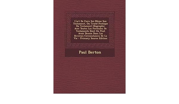 L Art De Faire Soi Meme Son Testament Ou Traite Pratique Du Testament Olographe Avec Toutes Les Formules De Testaments Dont On Peut Avoir Besoin