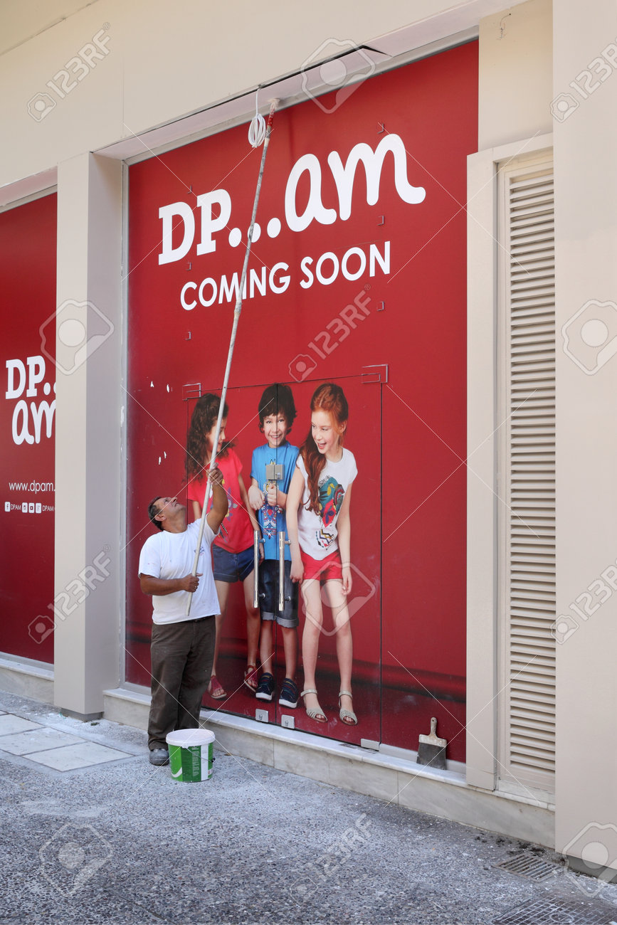 Larissa Greece 31 July 2017 Worker Painting Wall And Preparing