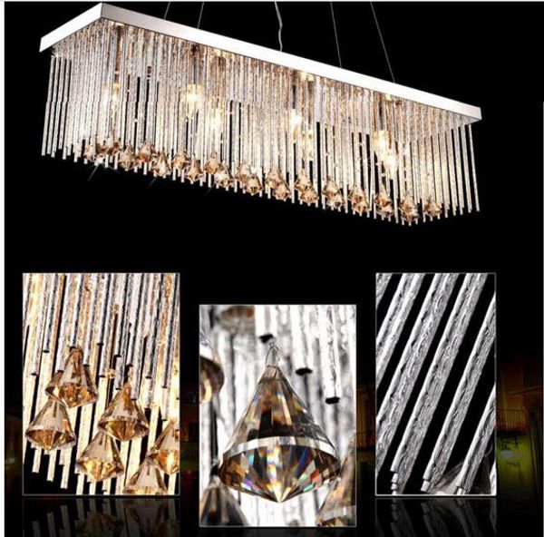 Acheter Luxe Ac110 240v Moderne Rectangulaire Lustres En Cristal Pendentif Lumiere Salle A Manger Longueur 80 Cm 100 Cm Led Lampe De Plafond Avec 6